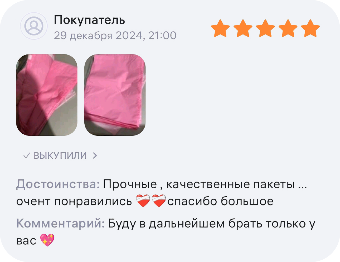 Изготовим для вас индивидуальный размер пакета под габариты вашей продукции. На данный момент производим пакеты в трех цветах (розовый, синий, бирюзовый), но если вам нужны пакеты в другом цвете, то мы обязательно рассмотрим ваш вариант. Стоимость по запросу.